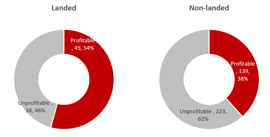 在过去的十年里,大约有41%升涛湾的私宅交易实现了盈利。然而,值得注意的是,就盈利能力而言,有地私宅优于非有地私宅。具体而言,在升涛湾,约有54%的有地私宅交易报告了平均中位总利润为360万新元。相比之下,在同一时期,只有约38%的非有地私宅交易在升涛湾获利,平均中位总利润为58万新元。